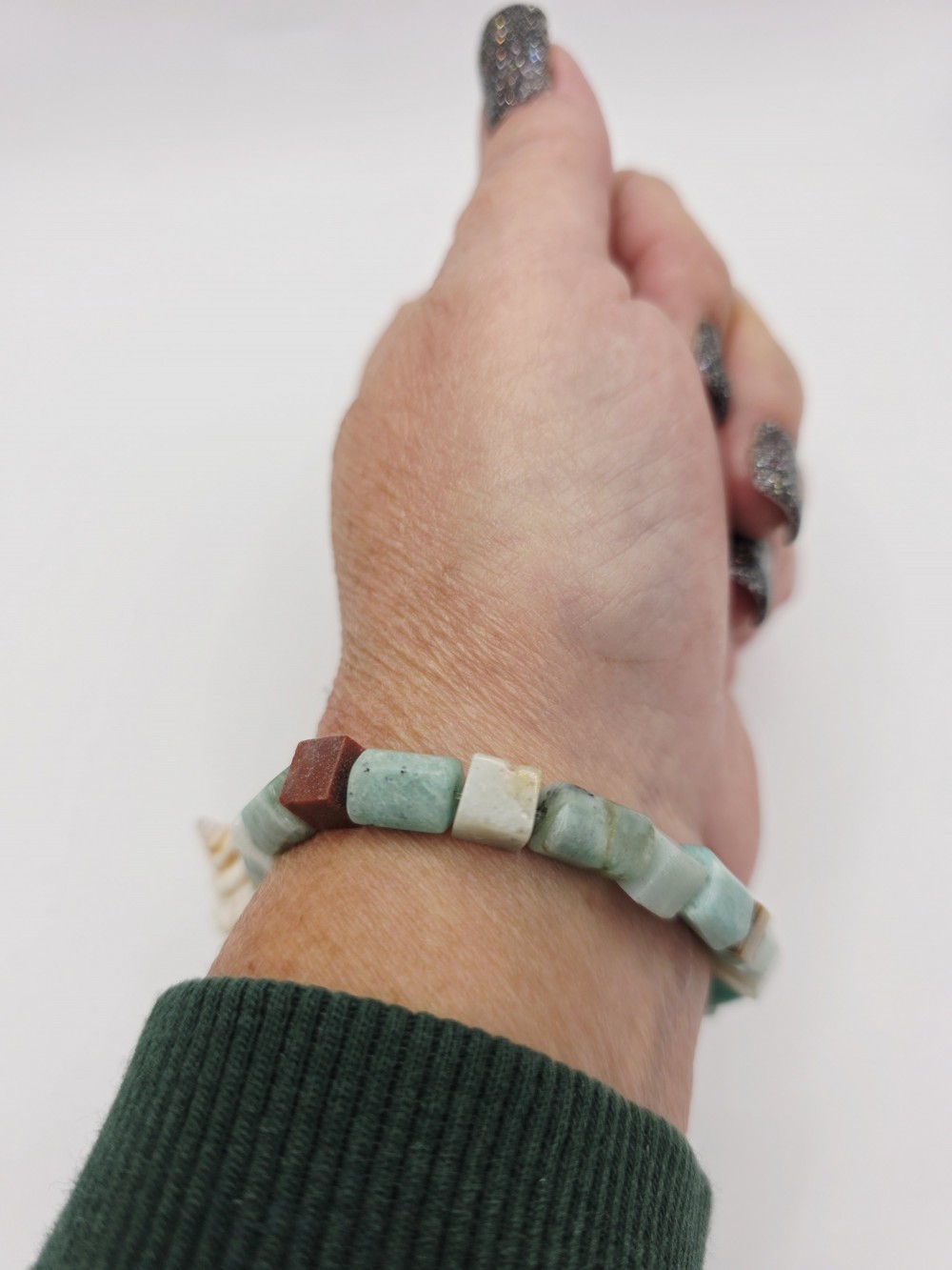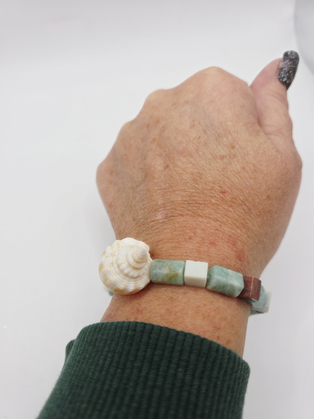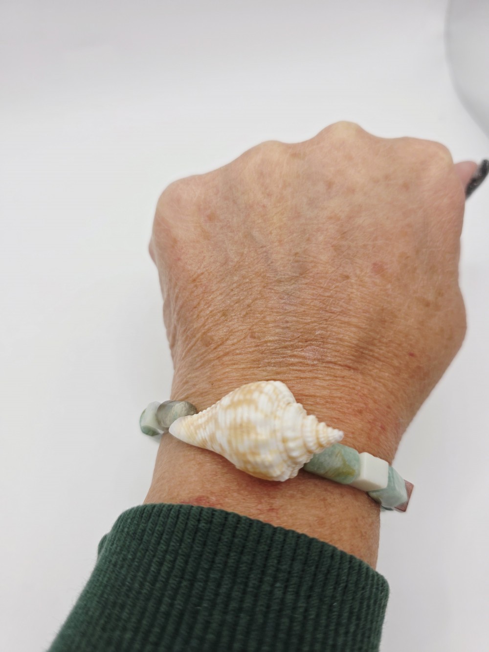Genuine Florida juvenile conch shell with amazonite beads. 6.5 inch heavy duty stretch cord. Custom orders available