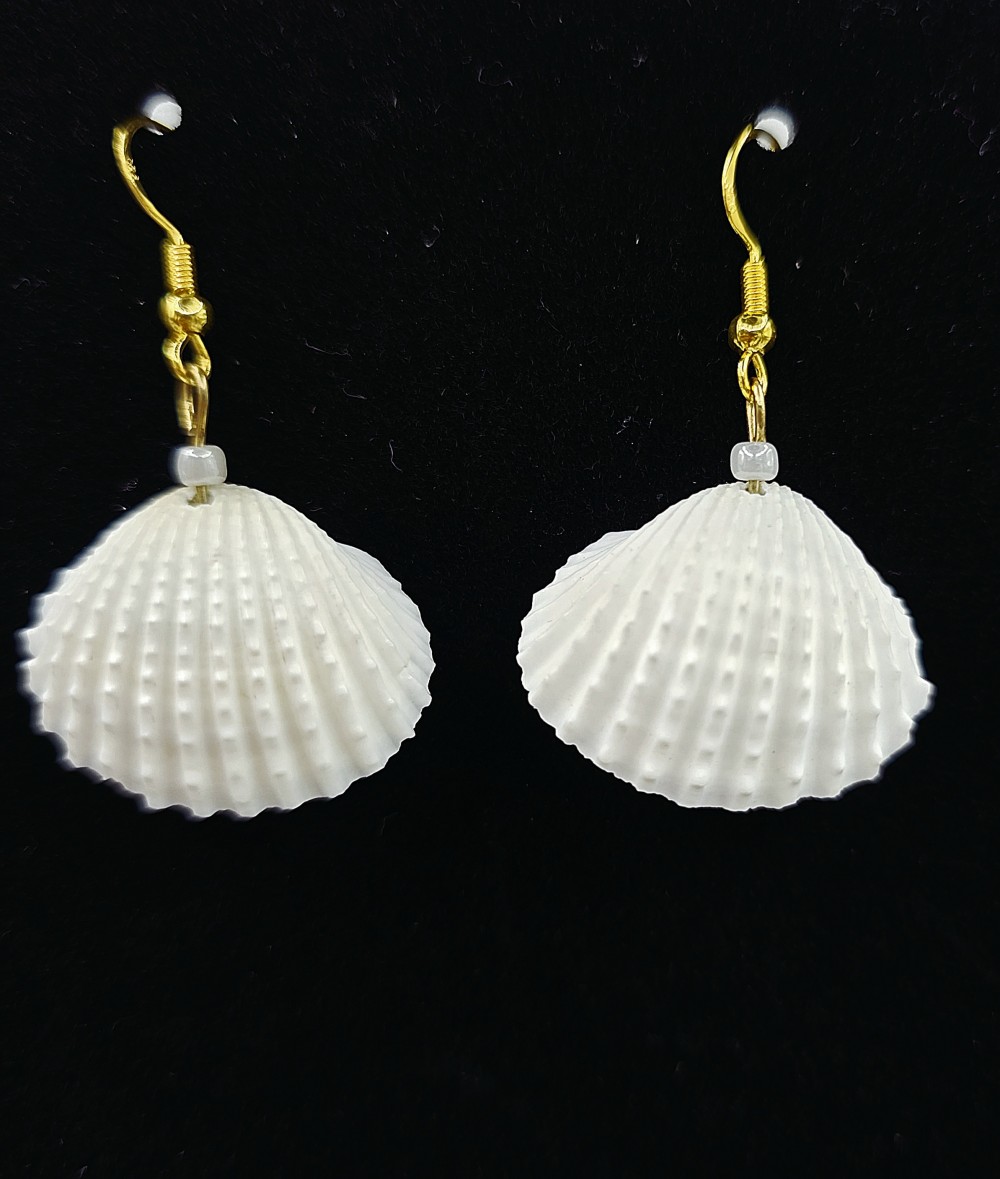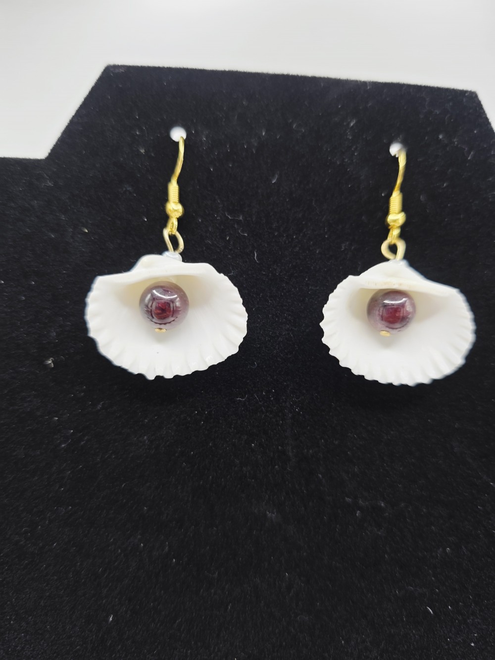 Fancy ark shell with genuine garnet beads made with anti tarnish gold plated stainless steel findings.