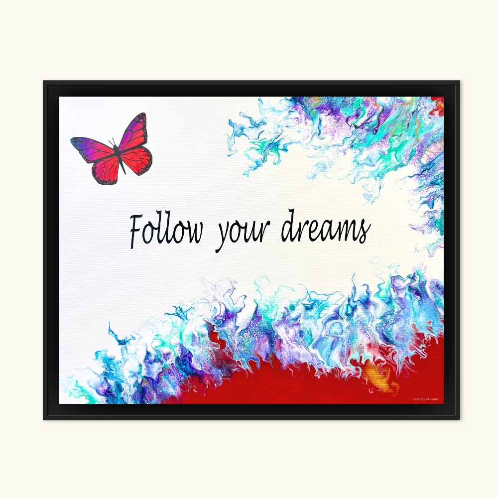 This is an embellished artwork which includes vinyl lettering. Artist: Lori McKinnon. This acrylic painting is signed and includes certificate of authenticity as well as a black floater frame. Ready to hang
