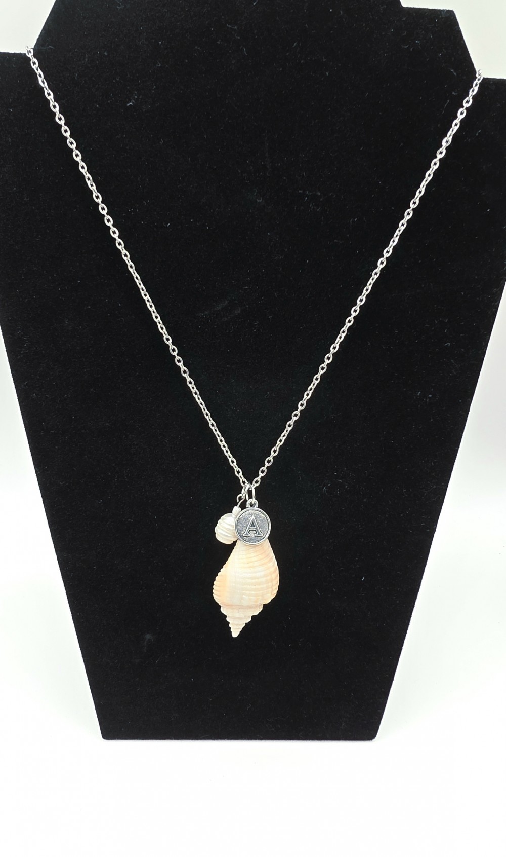 Juvenile Florida fighting conch personalized necklace with freshwater pearl (removable). 18" silver stainless anti tarnish chain and findings. Shell is treated to stay fresh out of the gulf look. Custom orders available.